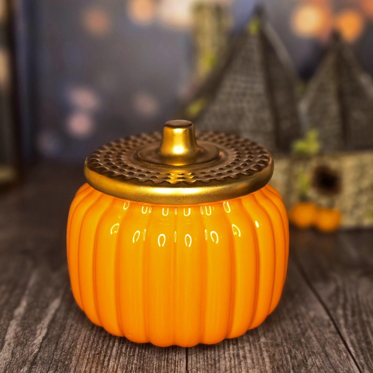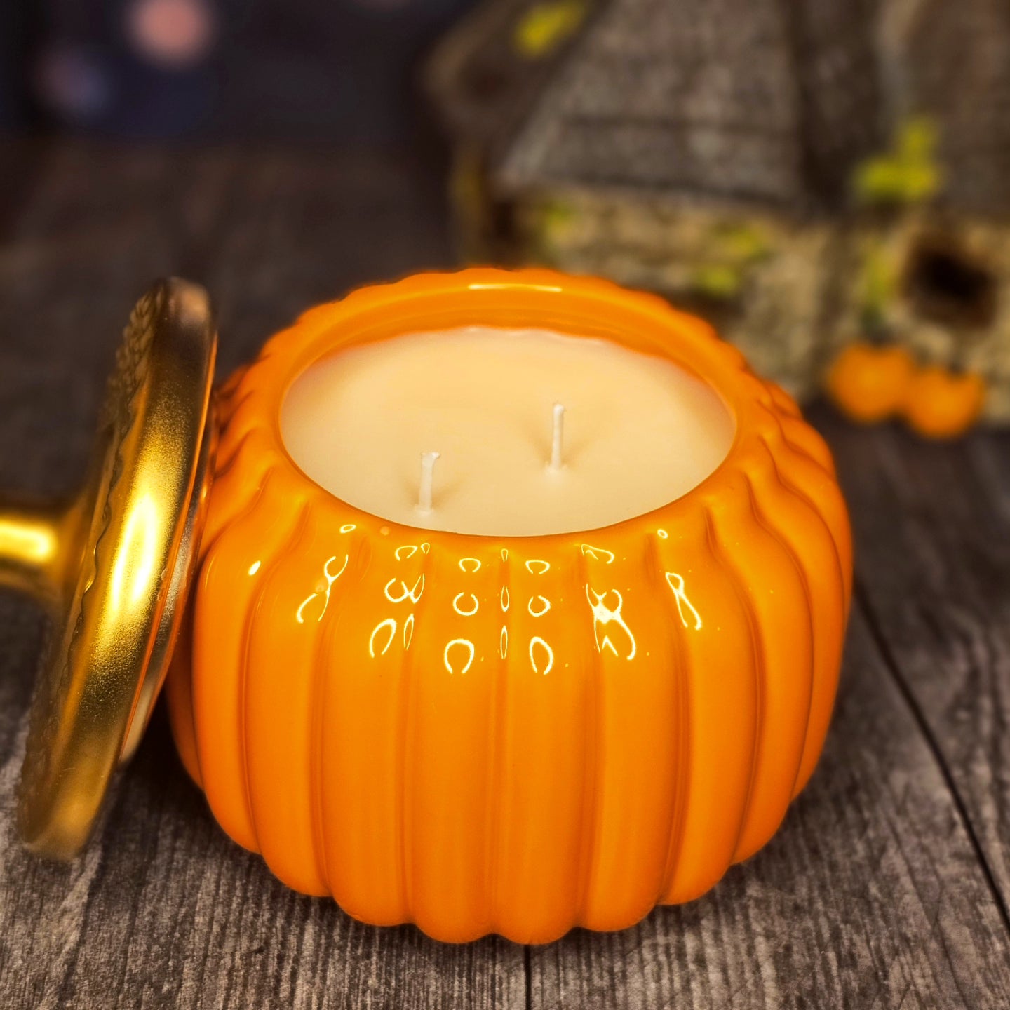 I've made FIVE "A Nice Cup of Tea Or a Large Brandy" Candles in an orange pumpkin from our favorite groundskeeper's patch.